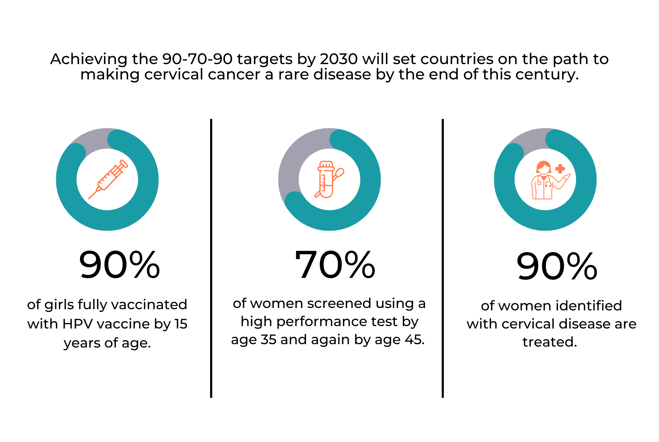 - 90% of women with cervical precancer or cancer should receive appropriate treatment and care.